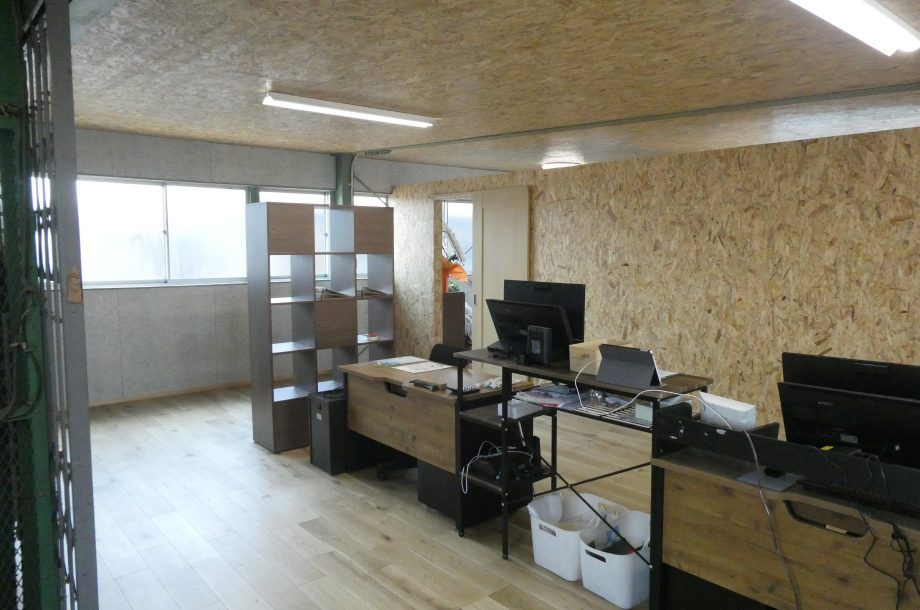 別棟に自動車修理工場があり、その事務所兼お客様待合スペースをつくるご依頼でした。